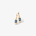 Baño de oro en tono clásico brillante de 24 quilates con finos cristales en azul. Largo aprox. 3.3 cm. (Con pasador)