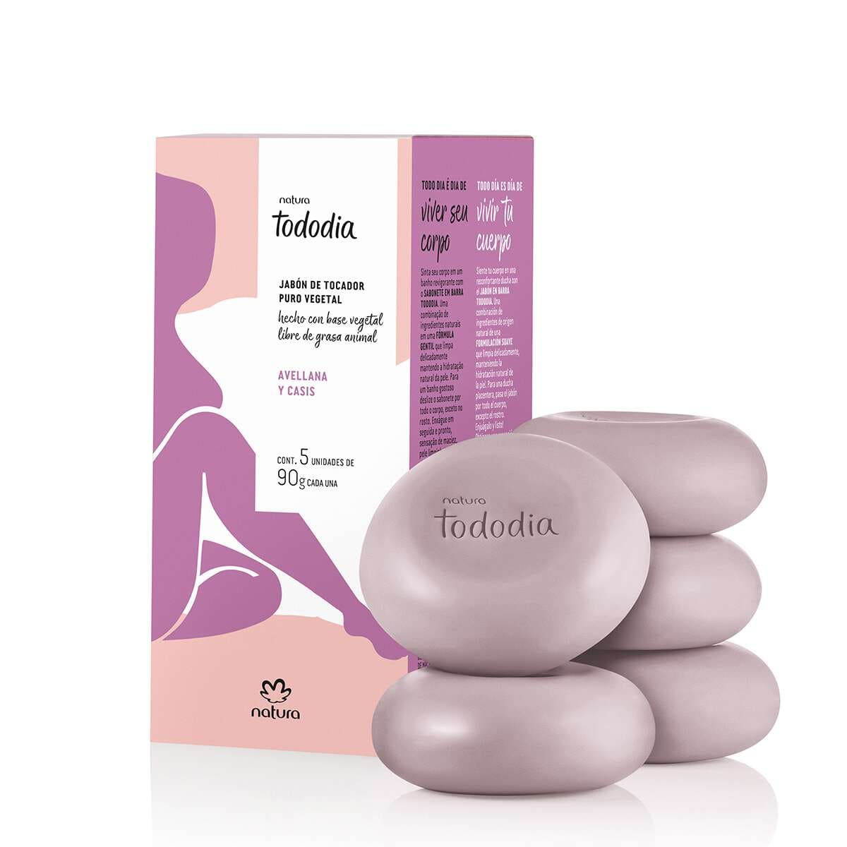Los Jabones en Barra Puro Vegetal Tododia Avellana y Casis Natura 90 g X5 Contiene 5 unidades de jabones cremosos para el cuerpo, ideales para complementar tu higiene y seguir teniendo un aroma agradable.