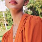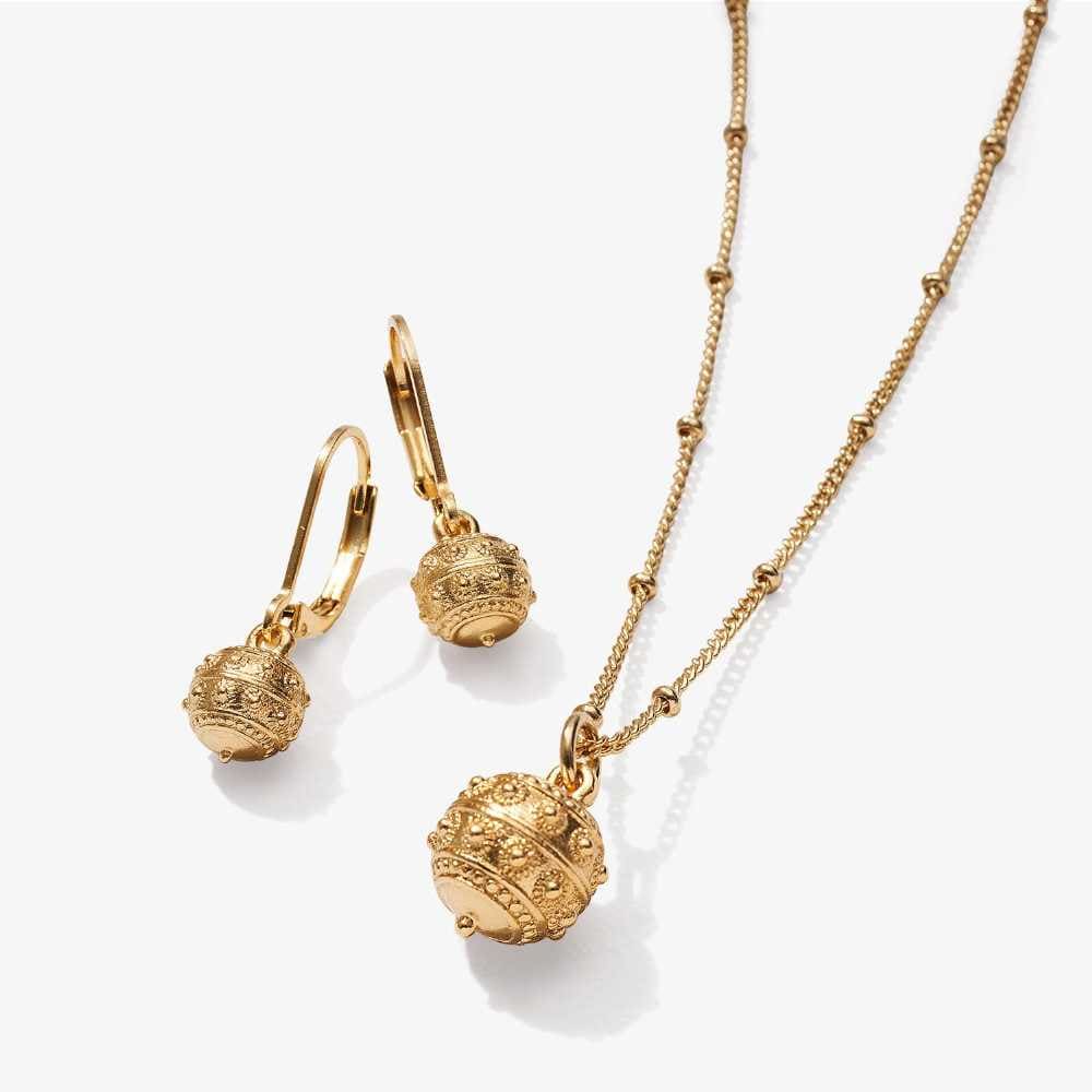 Baño de oro en tono bronce semibrillante 24 quilates. Collar (largo aprox. 41 a 46 cm) y aretes (con pasador)