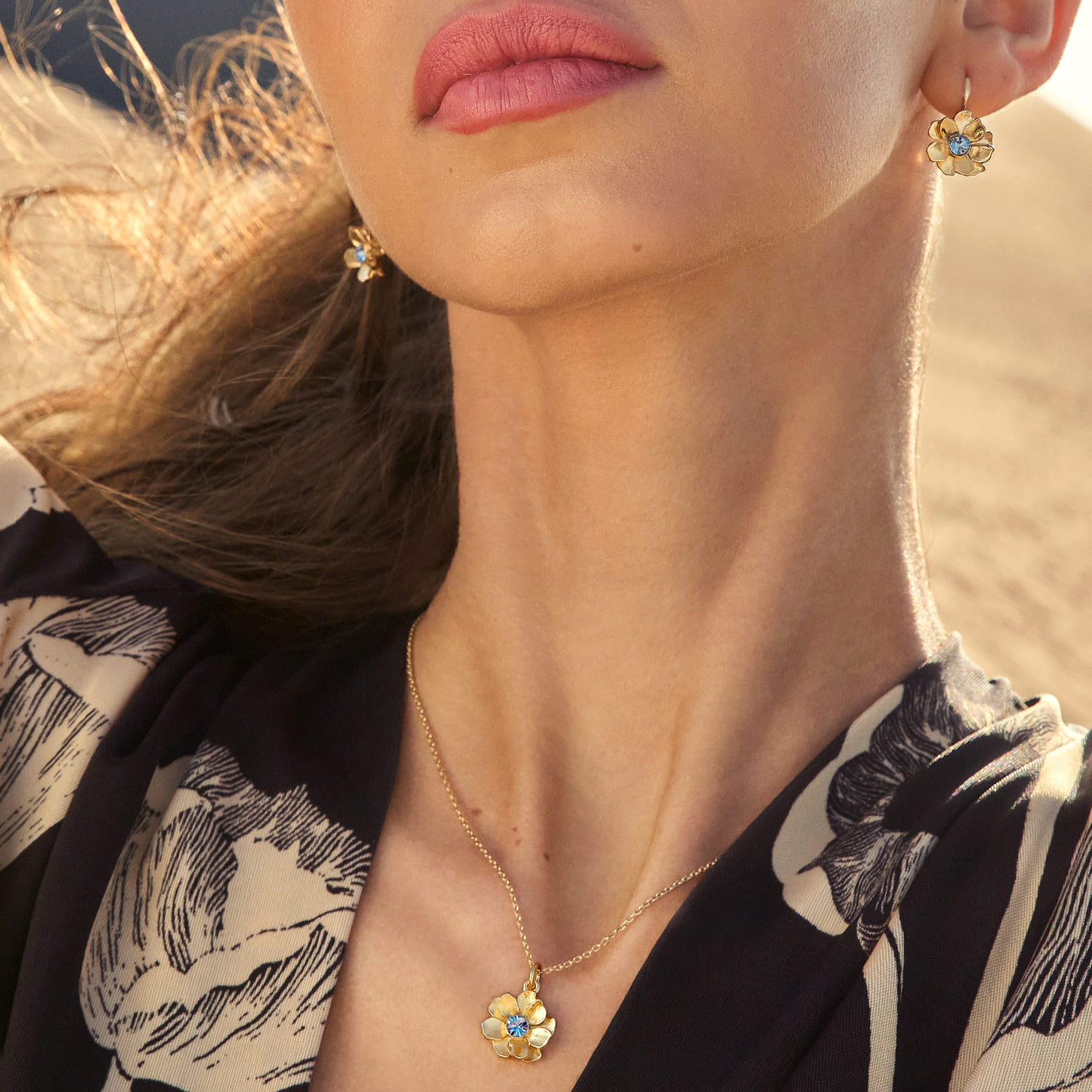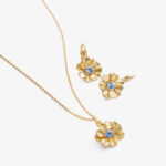 Bañado en oro en tono bronce brillante de 24 quilates con finos cristales en azul Collar (largo aprox. 43.2 cm)(largo colgante 1.3 cm) y pendientes (largo aprox. 2.2 cm) con french h
