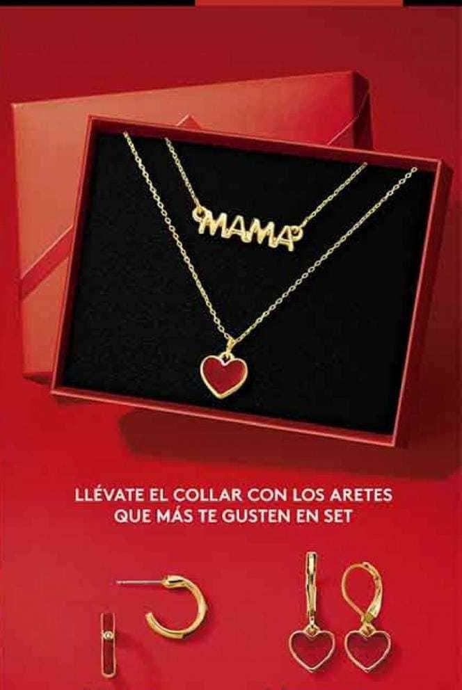 Colección Mom love glam. Esika. Estuche collar + aretes bañado en oro de 24k y pintado a mano.