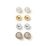 Estuche de aretes Cezzane. Esika. En baño de oro de 24k y plata, con perlas y cristales. (Arete más grande 0.8 cm)