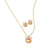 Baño de oro de 24k y pintado a mano. Collar corto de 40cm. Aretes de 1cm.