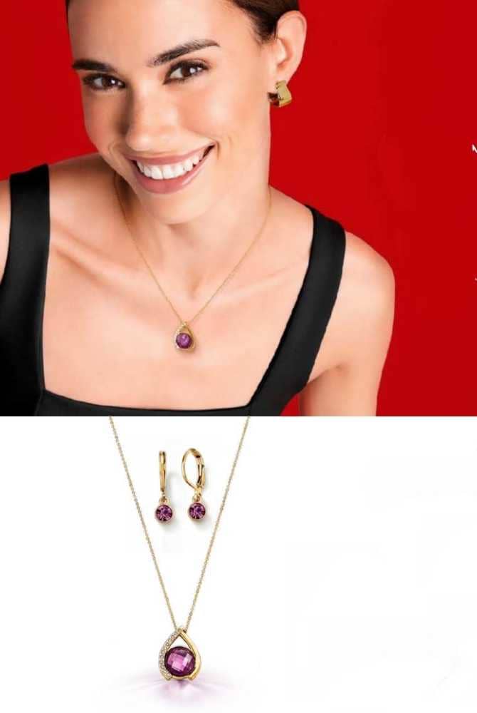 Colección Purple glam. Esika. Con cristales y perlas. Doble baño de oro de 24k.