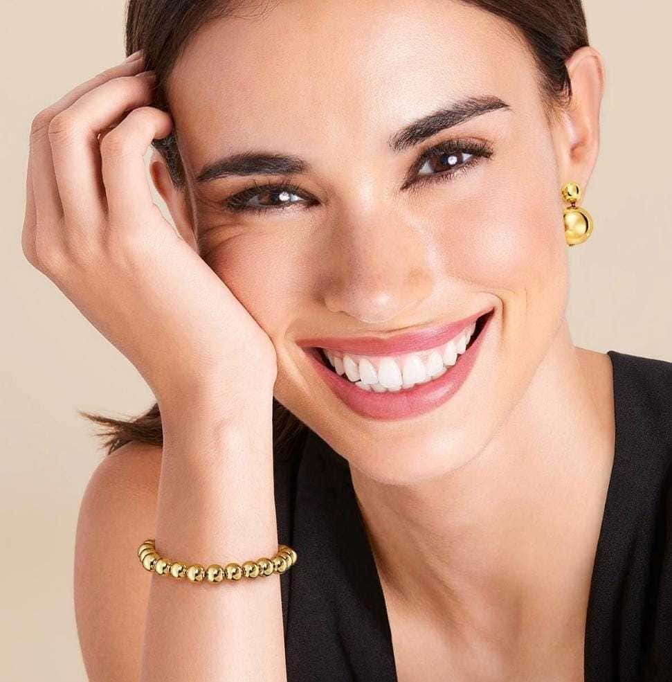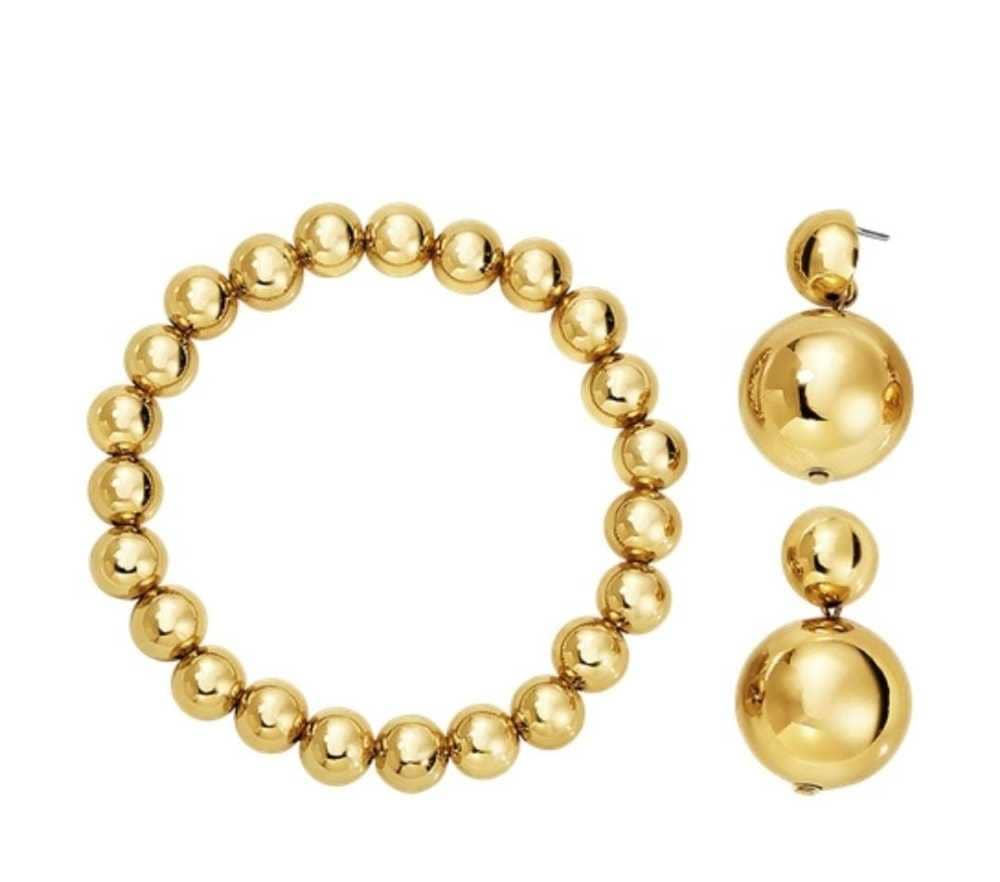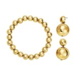 Baño de oro de 24k. Diámetro de pulsera de 17-21 cm. Aretes de 2.1cm.