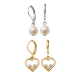 Set Aretes x2 en baño de oro de 24k y doble baño de plata certificada con perlas Finart* y cristales**.